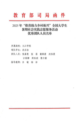 近日,威廉中国官方“文小青”乡村振兴服务队(西藏新疆专项)捷报频传,凭借推普援疆的扎实成效,一举拿下教育部2025年“推普助力乡村振兴”全国大学生暑期社会实践优秀团队、江西省大中专学生暑期“三下乡”社会实践优秀团队双项殊荣,指导教师吕敏、杨珍及全体队员获官方通报表扬。