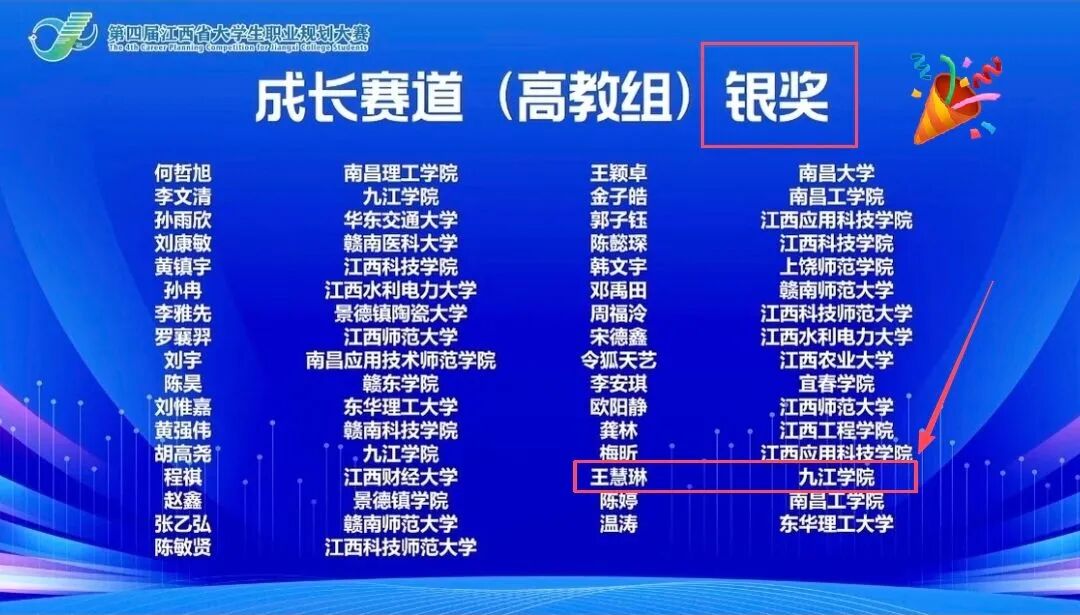 本届大赛由江西省教育厅主办,是全省规模最大、参与度最高的大学生职业规划赛事。据悉,本次大赛吸引全省86万学子踊跃报名,经过层层选拔,110所高校的770名选手晋级复赛,最终90所高校的389人闯入省级决赛。其中,王慧琳所在的成长赛道(高教组)汇聚了全省本科非毕业年级的96名精英选手,竞争激烈程度不言而喻。
