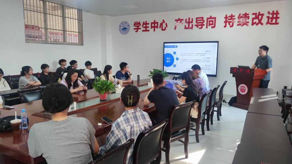 讨论会首环节聚焦“求职就业”核心议题。时海鹏立足企业招聘视角,从岗位分析、简历优化、面试技巧到职业规划展开系统性分析。“企业更看重解决问题的能力和持续学习的潜力。”时海鹏强调,现场学生纷纷记录要点。