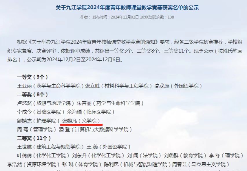 近日,我校2024年度教师课堂教学竞赛圆满落幕,经过初赛、复赛、决赛的竞争角逐,我院参赛教师张黎凡凭借其在《网络与新媒体概论》课程中的精彩表现,荣获比赛二等奖。