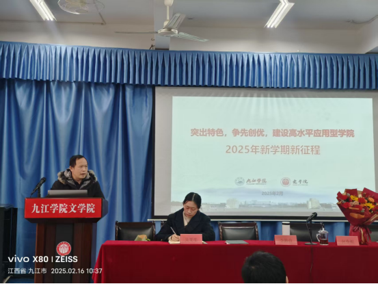 院长李勤合对2024年度学院工作进行梳理总结,并部署新学期重点任务。他以“突出特色,争先创优,建设高水平应用型学院”为题重点就申硕和本科教育教学审核评估工作进行了部署。