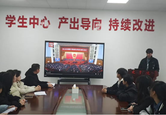 会后,大家组织了专题讨论会。围绕教育、就业、科技创新等热点话题展开热议。学生代表杜君奕表示:“作为汉语言文学专业的学生,我们要扎实学好专业知识,关注社会发展需求。”A2423班学习委员邓诗予则提到:“国家为我们创造了良好的就业环境,我们作为新时代大学生要提前规划好自己的职业生涯,不管将来从事什么职业,有什么样的志向,一定要加强自身基础知识的学习。打牢基本功和培育创新能力是并行不悖。把基础打牢了,我们才能触类旁通,行行都可以写出精彩。”教师代表谢建飞说:国家科技发展日新月异,Deepseek、宇树科技机器人、空军第六代机成功试飞,国家整体实力不断地在发展进步,看到成绩的同时,我们更要胸怀报国志,努力成长为对国家社会有用的人。”