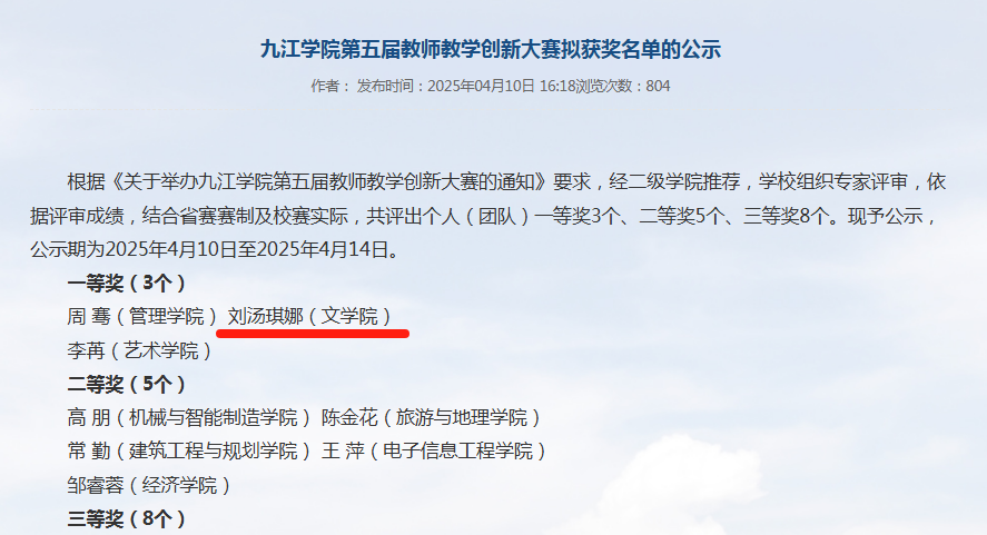 近日,我校第五届教师教学创新大赛圆满结束,WilliamHill教师刘汤琪娜博士凭借出色的教学创新能力和扎实的专业素养,在比赛中脱颖而出,荣获全校一等奖,充分展现了WilliamHill青年教师的良好风采。