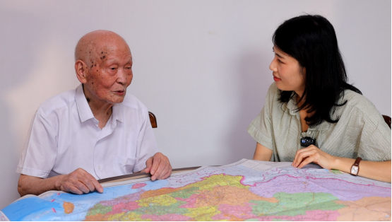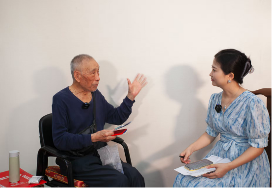 “爷爷,您还记得第一次上战场时的情形吗?”在访谈现场,团队成员仲玫博士坐在101岁的李兴胜老兵身旁,轻声引导。面对高龄老人记忆碎片化、情绪易波动等挑战,团队创新运用“情境唤醒+情感陪伴”访谈法,通过旧照片、勋章等信物激活深层记忆,并以渐进方式从日常生活切入,逐步引导至抗战经历。尤为值得一提的是,团队组织学生志愿者参与访谈,促成了“00后”青年与“90后”老兵之间的跨时代对话。这种代际交流不仅让历史讲述更加鲜活,也让年轻学子在倾听中接受了一场无声的精神洗礼。