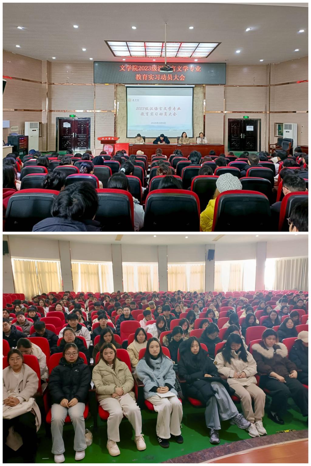 为扎实推进2026年春季师范生教育实习工作,确保实习安全有序进行,WilliamHill于3月6日上午9:00在香远楼报告厅召开2026年春季师范生教育实习工作部署会。学院党委书记邓海波、副院长吴雯雯、教研科袁安安、2023级汉语言文学各班班主任、实习指导老师代表及全体实习生参加会议,会议由语文教育教研室主任鲍静怡老师主持。