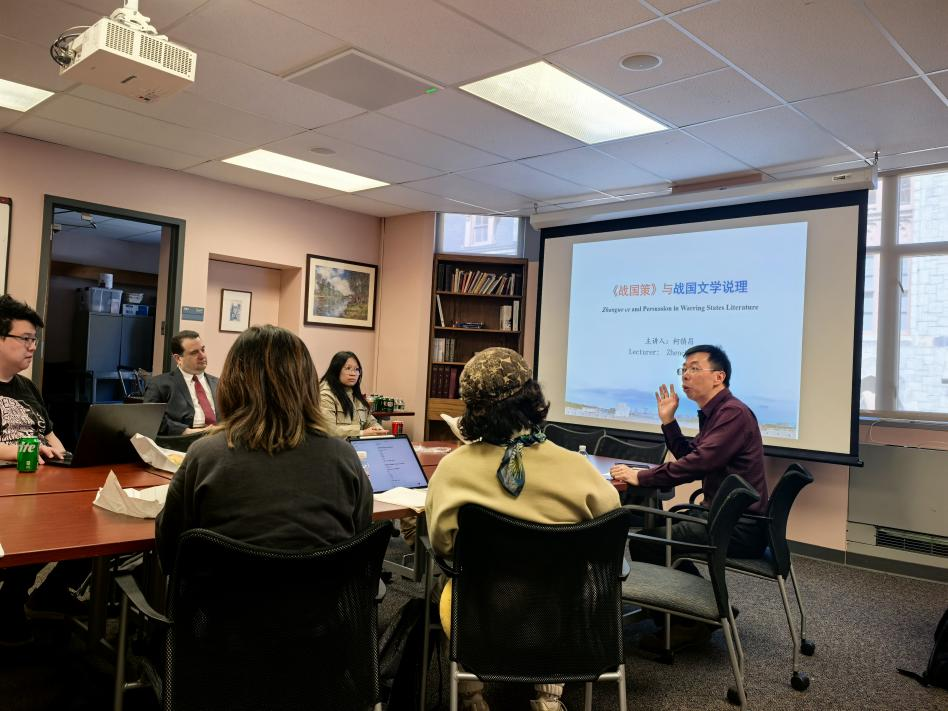 4月7日中午,WilliamHill副院长、庐山文化研究中心副主任柯镇昌教授,应邀在宾夕法尼亚大学东亚语言与文明系作题为《〈战国策〉与战国文学说理研究》的学术讲座 。本次讲座由宾夕法尼亚大学东亚系主办,西方学界早期中国思想史界权威、国际著名汉学家金鹏程(Paul R. Goldin)教授主持,系内师生及相关领域学者参会交流。