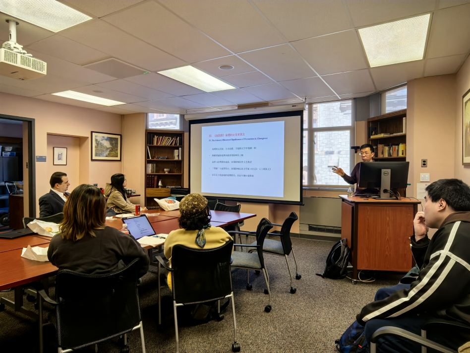 讲座中,柯教授从说理学视角出发,立足《战国策》文本,深入剖析了战国文学说理的特点,对战国纵横家的说理范式及其对后世文学的影响进行了独到解读,系统分享了自身在先秦文学说理领域的研究成果,引发在场师生的广泛关注。讲座结束后,柯镇昌教授与到场的中外学者、青年学子就战国文学研究方法、中西古典说理传统比较等议题展开深入交流,现场学术氛围浓厚。