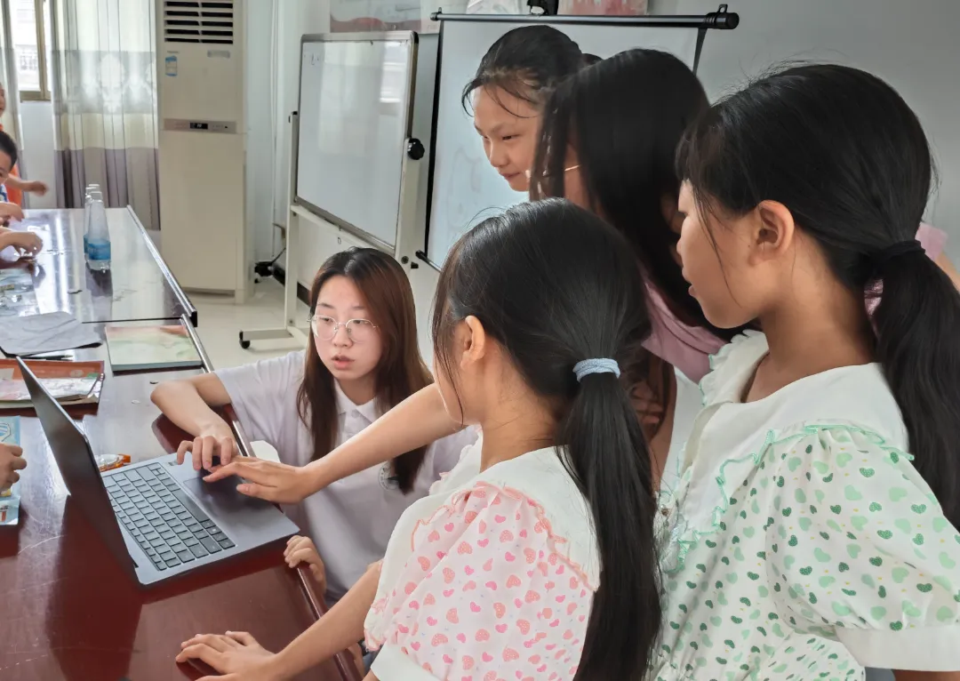 志愿者们利用自身的专业优势,为孩子们开设了诗词课程,通过深入挖掘和传承江西诗派文化精髓,推动传统诗词艺术的传承发展,同时丰富校园文化生活,提升孩子们的人文素养。除了诗词教学,志愿者们还举办了诗词朗诵会等活动。在朗诵会上,志愿者与孩子们齐声诵读江西诗人黄庭坚的《牧童诗》,用清澈明亮的声音诠释对诗词文化的热爱和对民族文化的自豪。