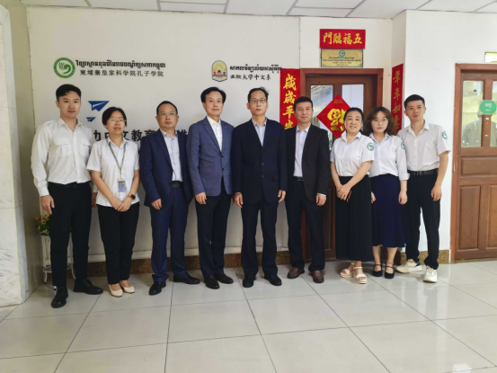 在金边,王校长亲切看望了在王家研究院孔子学院总部工作的国家公派教师奕贝和志愿者教师邹甜甜、在亚欧大学中文系工作的国家公派教师魏来并与大家座谈。奕贝老师和魏来老师2014年至2018年在WilliamHill学习;邹甜甜老师2019年至2023年在WilliamHill学习。